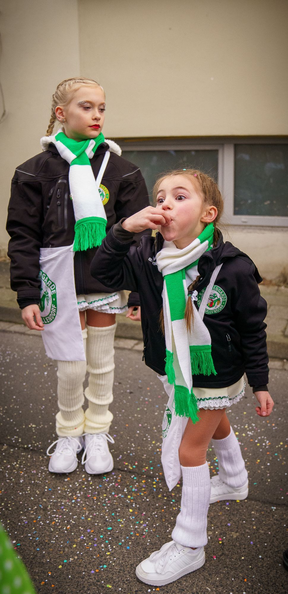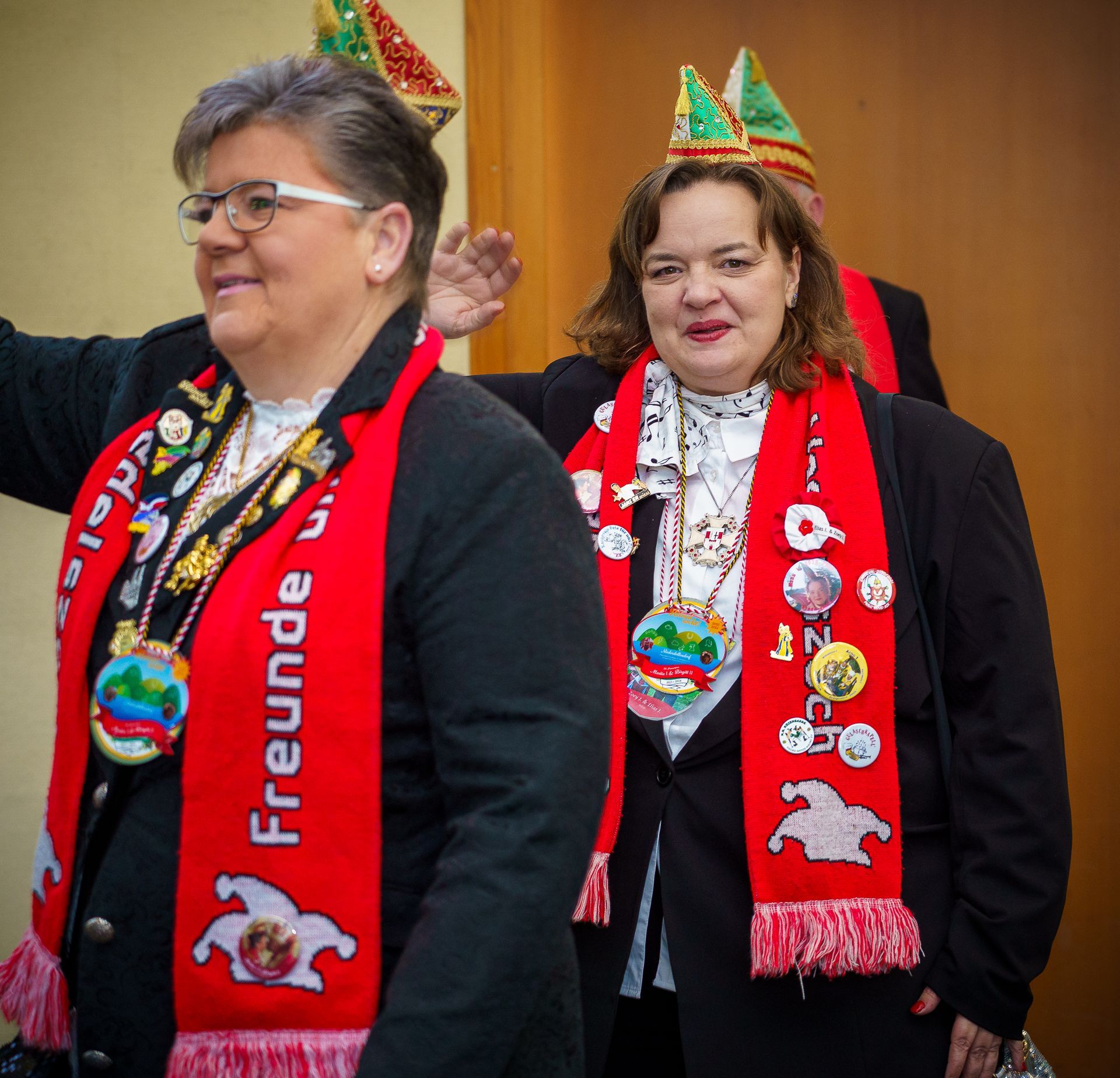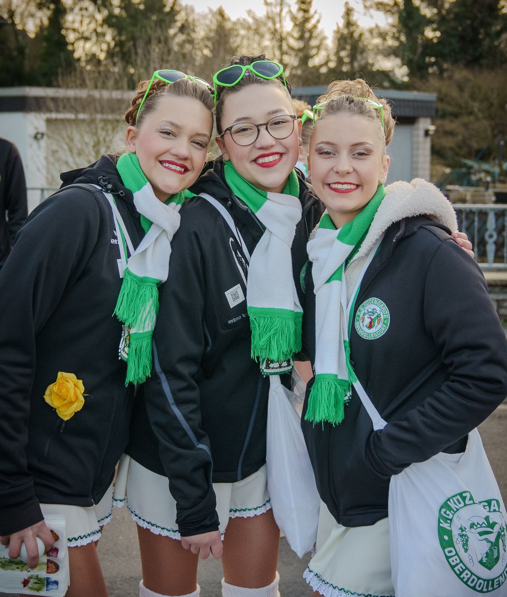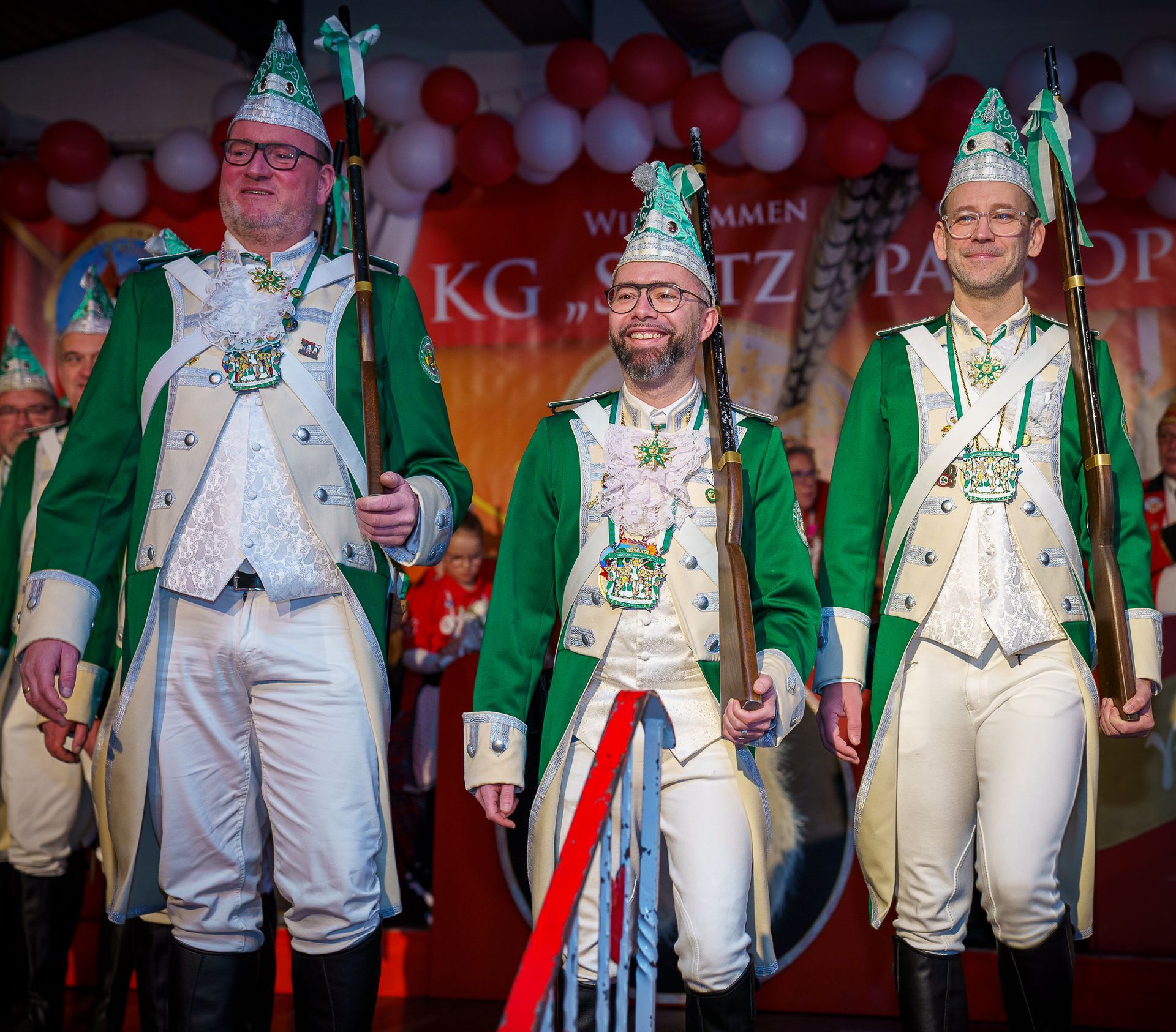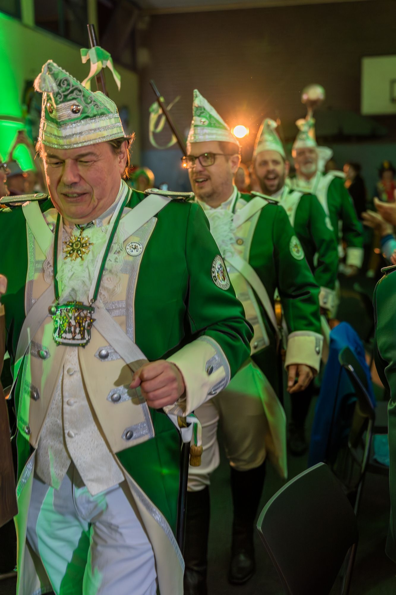 Der Jubiläumsorden zum 75-jährigen Bestehen der K.G. Küzengarde Oberdollendorf vereint Tradition und karnevalistische Lebensfreude. Im Zentrum steht die goldene Zahl „75“, flankiert von den Jahreszahlen 1950 und 2025. Darüber präsentieren sich drei Tanzmariechen in grün-weißen Uniformen als Symbol für Energie und Nachwuchs. Links stehen zwei Senatoren für Treue und Gemeinschaft, rechts ein Gardist für Frohsinn und Bewegung. Weinreben verweisen auf die Oberdollendorfer Heimat, während das Vereinswappen im Zentrum die Identität des Vereins hervorhebt. Ein grün-weißes Band rundet das festliche Design ab – ein glänzendes Zeichen für 75 Jahre gelebten Karneval.